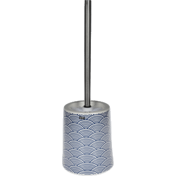 Peria pentru WC MSV Bento este un accesoriu folosit pentru intretinerea si pastrarea igienei adecvate din spatiul sanitar. Este realizata din ceramica, de culoare bleu. Modelul cu imprimeu geometric ii ofera un design modern, fiind accesibil de amenajat in orice baie. Dimensiunile de 12.5 x 12.5 x 41.5 cm o fac sa fie usor de folosit si manevrat, si, in acelasi timp, ocupa putin spatiu. Produsul este dotat cu un maner metalic si vas pentru depozitarea periei. Montarea se realizeaza stativ, lang