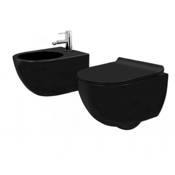 Set vas wc suspendat Karag LT 57E-UQ-MB Negru Mat Rimless si capac soft close