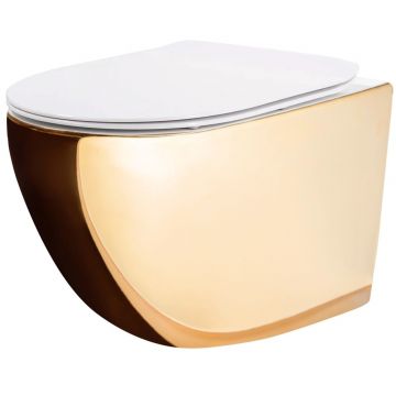 Set vas WC suspendat Rea Carlo rimless auriu - alb cu capac softclose