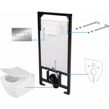 Set vas wc suspendat Geberit Smyle Square Rimfree cu rezervor incastrat Duofix Delta si clapeta Delta 50 crom - Montaj suspendat